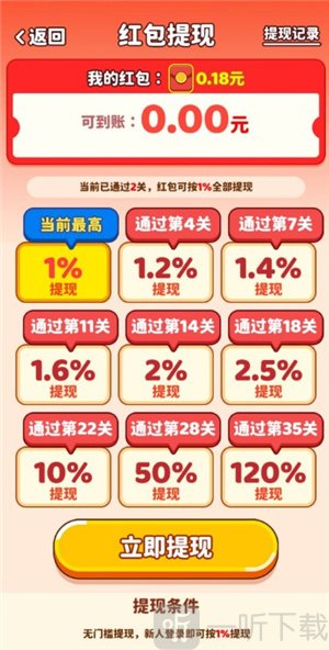 5. 红包按照百分比,最低0.1就能到账。