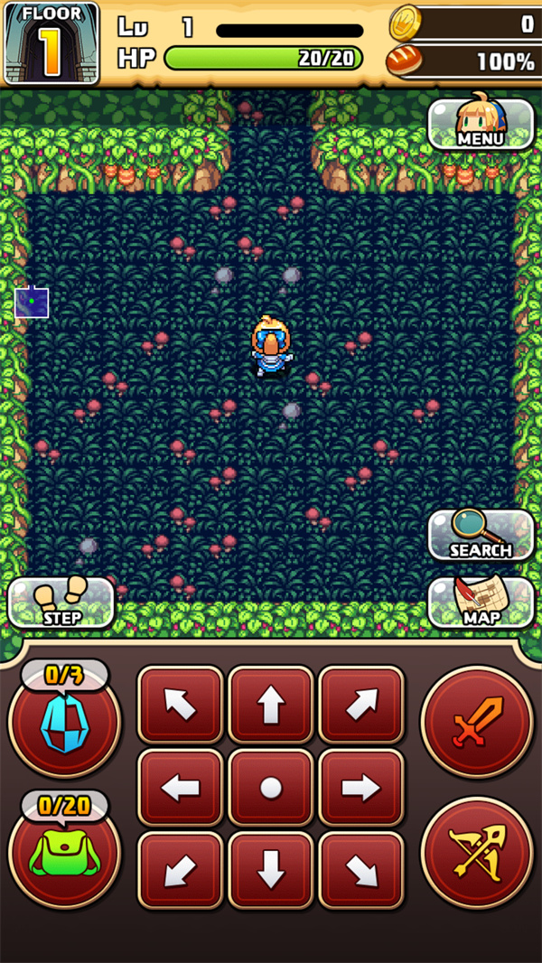 1、闯关探索玩法:标准闯关制,玩家在迷宫中移动探索,收集散落的武器、盾牌等道具,击败怪物,寻找迷宫出口。