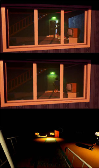 沉浸式解谜场景:邻居的房屋设计复杂且充满细节,从一层的客厅、厨房到顶层的阁楼,再到神秘的地下室,每个区域都有独特谜题,如通过调整画框位置打开暗门、利用音响干扰邻居听觉,解谜与潜入结合紧密。