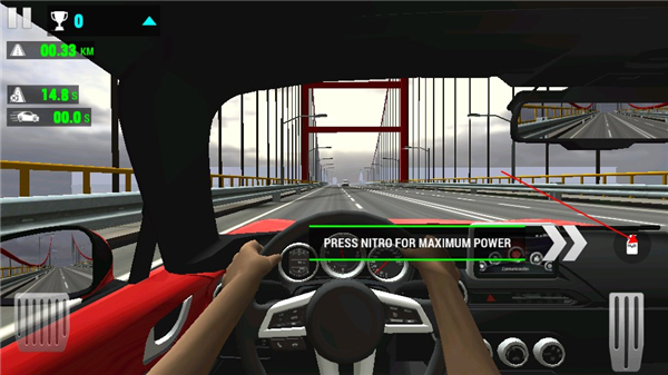 1、在本站下载安装并打开赛车限制游戏,进入游戏。右边按钮是油门,点击可以加速。