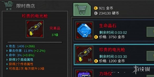电光枪:子弹具有穿透效果,非常适合群体刷怪。