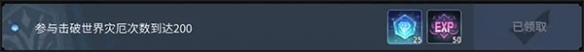 参与世界回响的讨伐活动,完成200次可获得成就奖励。每讨伐5次世界boss,即可获得25钻石和50世界回响经验。建议尽早完成,以便快速提升回响等级,进而增加挂机时间上限。