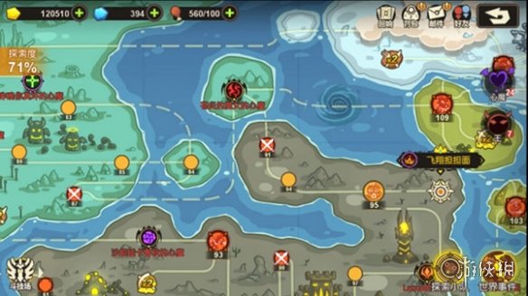 游戏的推图系统被放置在大世界地图上。大部分关卡的前置条件并非唯一,只要前置关卡节点已经开启,且探索者等级达到该关卡的要求,玩家便可以自由挑战任意已开启的关卡节点。
