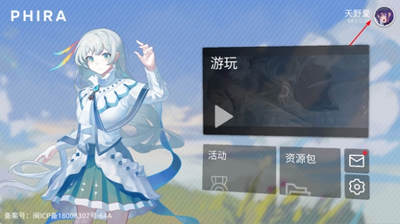 1、打开Phira手游,进入游戏界面后,点击右上角的头像。