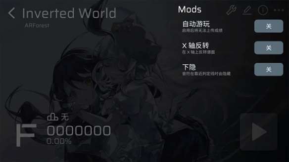 在游戏界面内,点击右上角扳手图标,屏幕右侧将展示三个模组选项,分别为自动游玩、X轴翻转、以及下隐功能。