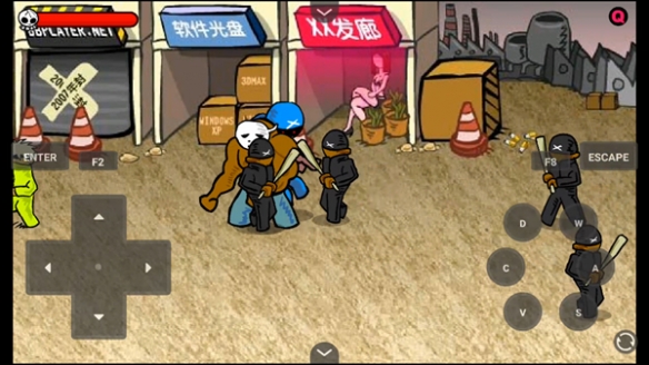 抓住敌人:在格斗状态下,接近敌人直至身体接触,主角会自动抓住敌人,此时,按攻击键可以打击敌人,按左或右键可以将敌人扔出。