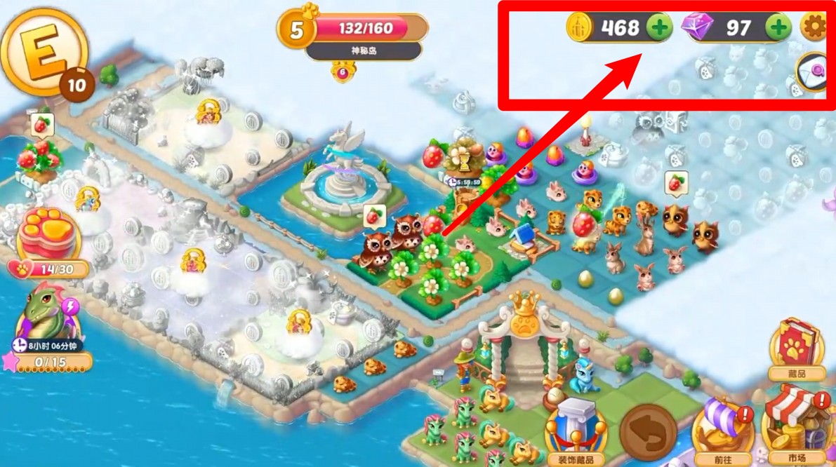 2.资源金币展示:界面右上方清晰显示金币与钻石数量,方便玩家随时掌握财富与能量储备,用于解锁更多区域和加速发展。