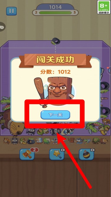 3. 当达成关卡目标后,会弹出通关提示,其中展示得分以及进化形象,此时点击“下一关”按钮,就能继续挑战更多内容。