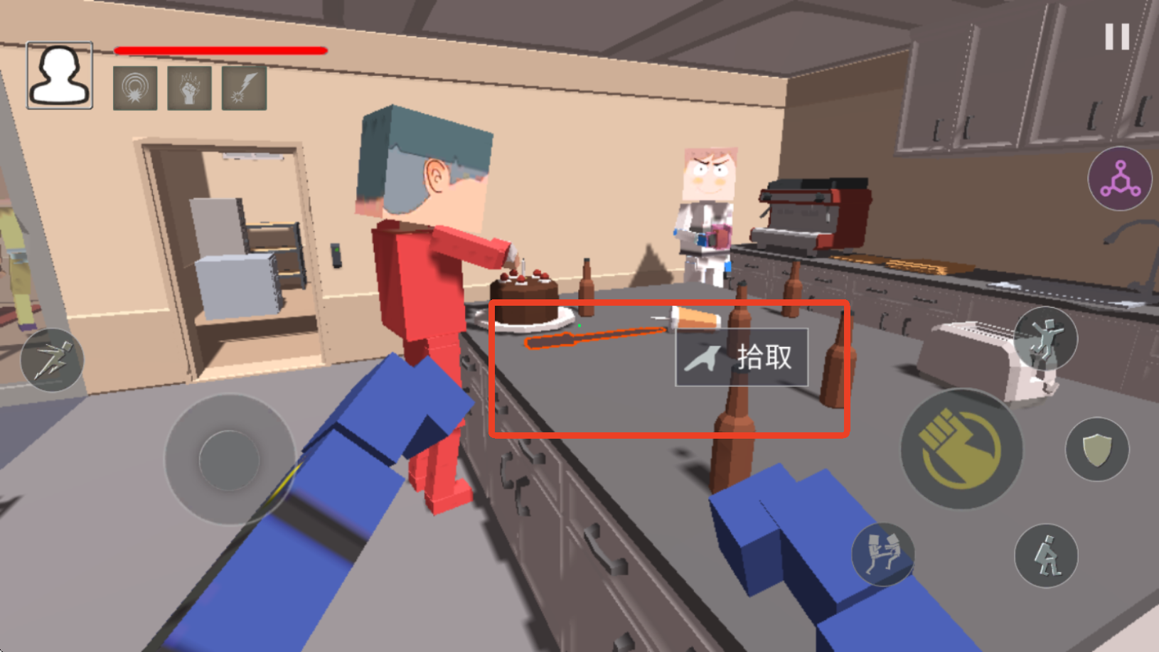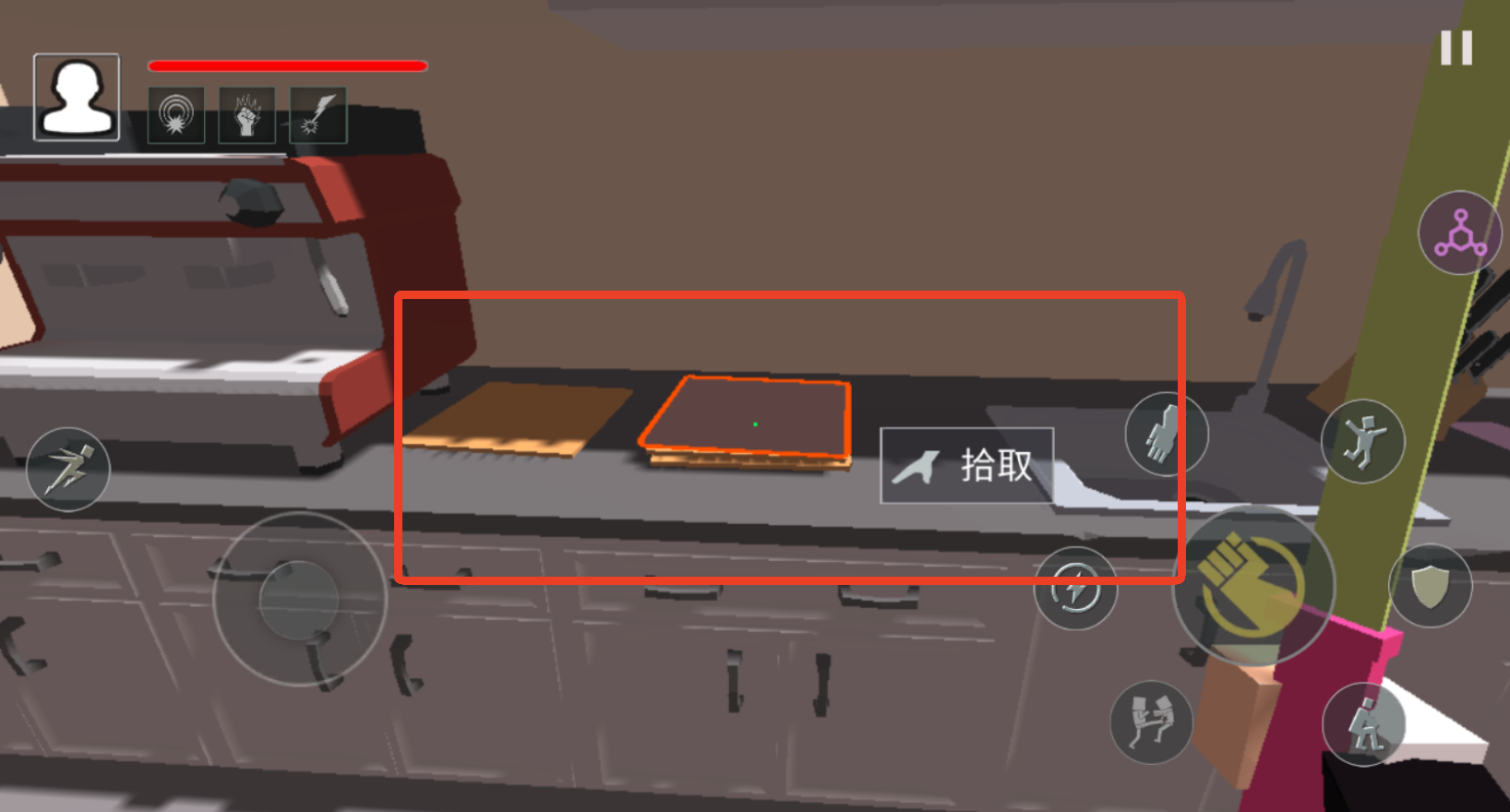 3、往前走,靠经这个桌子时就会出现可以拾取的选项,对应的物品就会有红色的描边。这把刀还是非常耐用的,推荐!