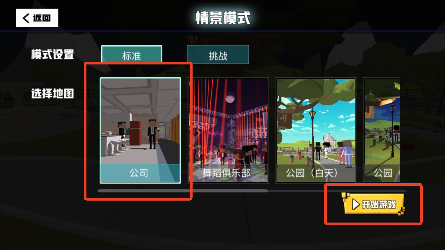 1、第一步,随意选择进入一个地图,此次我们选择进入情景模式中的公司地图,接着点击开始游戏。