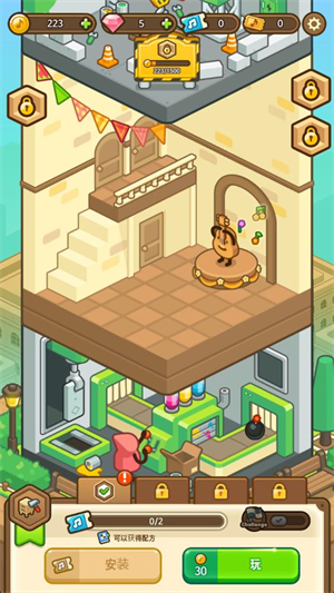 5、在主界面点击安装可以消耗一定数量的门票来解锁家具装饰,你可以选择不同风格的家具来安装。