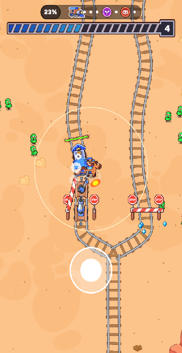 1、在行程里,玩家得清除道路上的障碍,保证火车可以不断前行。