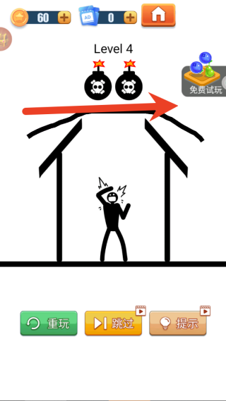 4、不断尝试并对策略加以优化,引领火柴人顺利抵达终点,从而解锁新关卡,挑战难度更高的谜题。