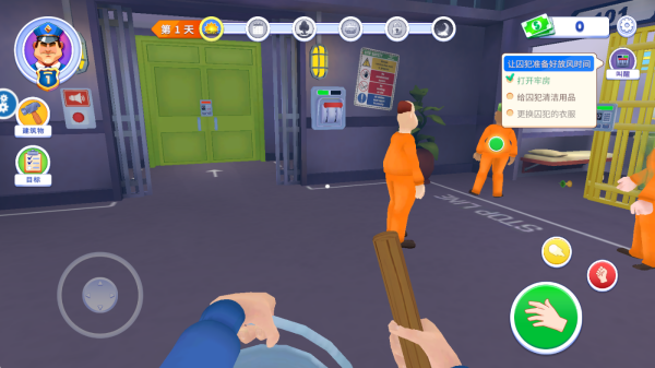 1、在监狱中,你将扮演一名狱警,根据右侧任务提示来完成每日对囚犯执行的任务。