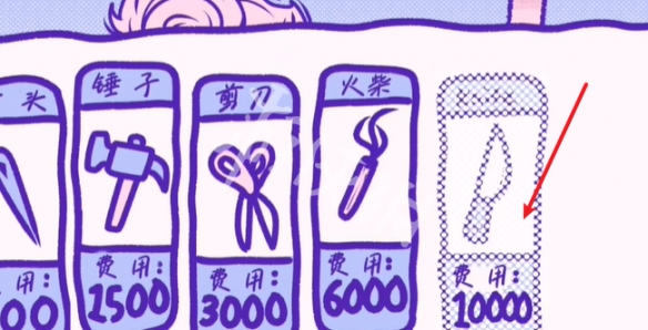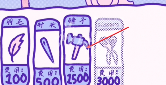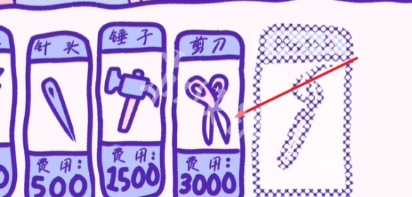 4、然后继续点击,然后依次购买【针、锤子、剪刀】。