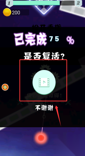 3、若挑战失败,会弹出复活选项,观看完完整的广告视频,就能继续从当前进度开始游戏。