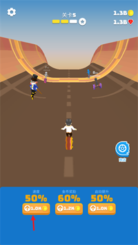 1、比赛时,你能够收集金币与钥匙,用来解锁更多全新物品,像各种骑行道具以及强化道具,以此提高你的速度。