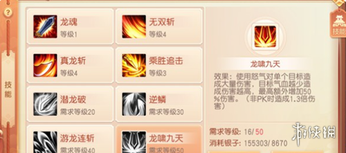 随着等级的提升,你将解锁更多技能,不同职业的技能各具特色,可以花费银两来提升技能等级,以增强自身战斗力。