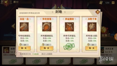 另外别忘了在封地中激活弓手BUFF,虽然提升分数不多,但聊胜于无,至于站位及最终结算分数,参照以下建议进行调整。
