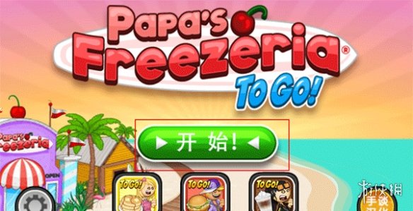 1. 启动老爹甜品店这款游戏,待进入主界面之后,点击【开始】这一选项。