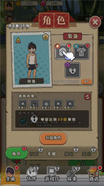 2. 领取任务所获奖励后,能够在“主角”界面开展强化升级操作。