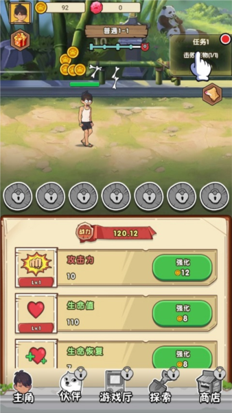 升级途径涵盖攻击力、生命值、生命恢复,还有攻击速度、暴击率等方面。通过强化升级,能够提高主角的战斗能力。