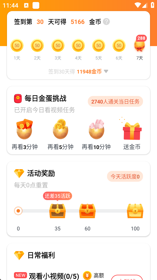 2. 能够借助每日签到、小游戏或者日常福利等方式来获得金币。
