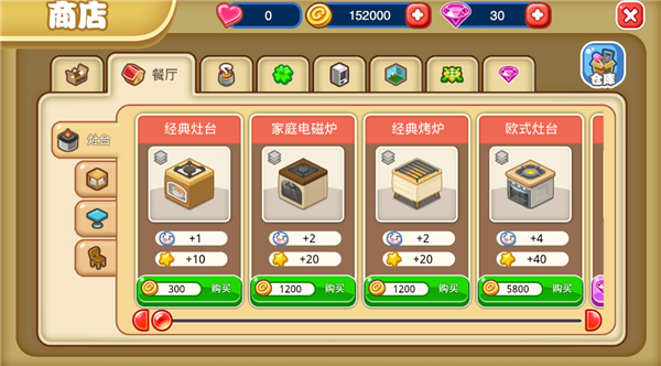 经营系统里提供了装修相关功能。只要选中商店,就能在对应的区域买卖各类装修材料,像桌椅、墙纸、地毯这些都有,帮助你打造出理想中的餐厅。不仅如此,你还能按照自己的喜好,随心所欲地选择喜欢的装修风格,不管是日式、欧式、中式,甚至将不同风格进行混搭,都没有任何约束。