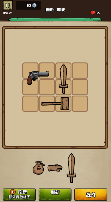 刷新你的武器放入背包,开始战斗