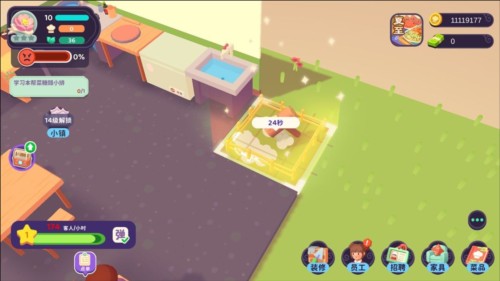 随着你招待的客人越来越多,餐厅积攒到一定的口碑时,你就可以通过招聘服务员和厨师来加快照顾顾客的速度,身为店长的你就可以解放双手啦!