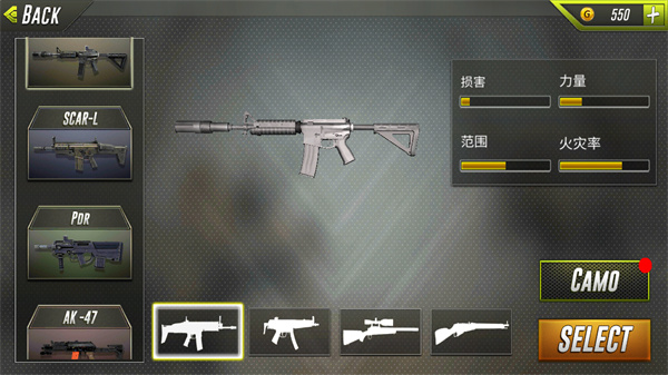 3、玩家需依据自身需求挑选枪械,点击“SELECT”后进入游戏进行游玩。