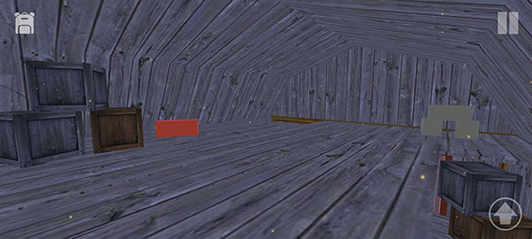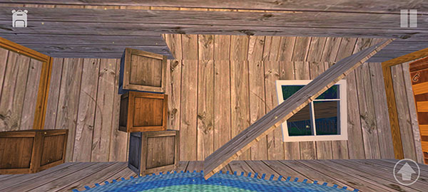 7、着手探索房间,留意到楼顶的木板已然破碎,借助背后的木箱子能够攀爬上去。