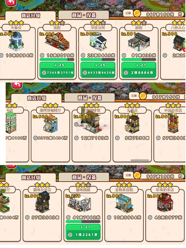 3、开设店铺并对其进行升级,还能招募员工,以此提升店铺等级。