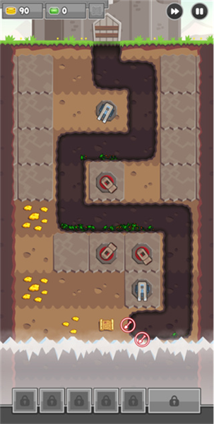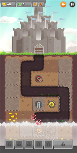 《挖掘防卫者》英文名为Digfender ,由Mugshot Games Pty Ltd推出,是一款极富趣味的塔防策略游戏。在游戏里,玩家将化身为城堡卫士。当地面突然隆起,玩家需在地下开启城堡保卫战,把形形色色的敌人都消灭于地下!它的玩法与《保卫萝卜》有相似之处,不过特别的是,除了布置防线,玩家还能够自行挖掘地道,而玩家挖出的道路就是敌人前进的通道。这并非是让玩家在固定路线上搭建防御塔来迎击敌人,而是需要合理规划敌人的攻击路线,并依据该路线安装防御塔。如此玩法大大提升了游戏的自由度,趣味性也更上一层楼。感兴趣的小伙伴们,快来体验一番吧!