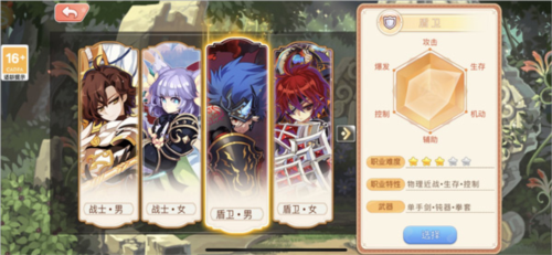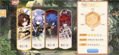 先来说说职业推荐,当前游戏中有战士、盾卫、法师以及游侠这四种职业,每个职业都分男女。性别差异主要体现在外观上,属性方面没有差别。战士和盾卫对新手较为友好,它们各方面能力较为平衡。其中,战士的输出稍高,盾卫的生存能力则更为突出,这两个职业都属于近战类型。
