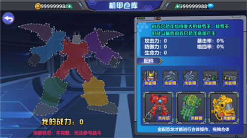 2、合体仓库用于存放我们收集的碎片,当碎片全部收集完毕后,会大幅提升各项属性,而属性的提升又会直接增加战力。