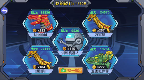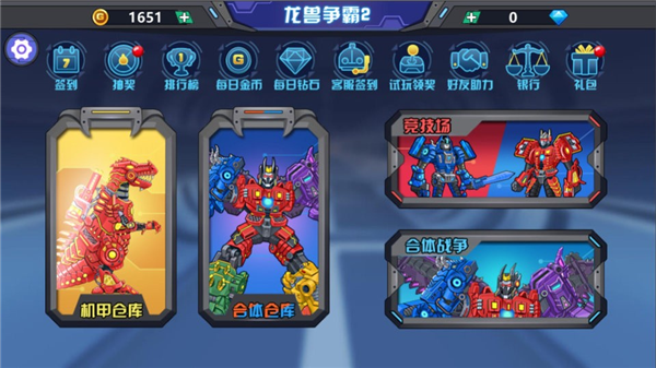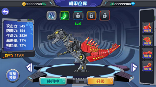 1、当进入游戏后,我们能够在游戏里点击机甲仓库,进而对恐龙们开展升级操作以及做出选择。