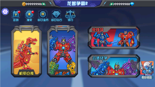 龙兽争霸2999999钻999999金币新版,是一款超好玩的机甲格斗游戏。这一版本是钻石版,玩家无需登录,一进入游戏就能拥有花不完的金币与钻石,可在这里无限使用。游戏延续了前作玩法,还增添了全新内容,里面所有机甲巨兽的装备都能升级进化,更是新增了数款机甲合体进化的战斗模式,为玩家带来了更多样的玩法。丰富多样的游戏机制,让玩家对这款游戏愈发爱不释手。