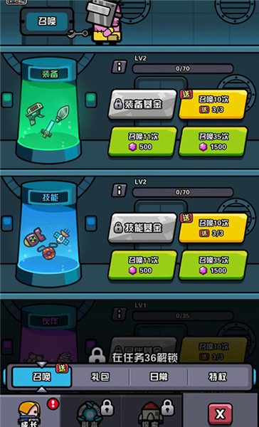 2. 能够进行装备、技能或者伙伴的抽取操作。