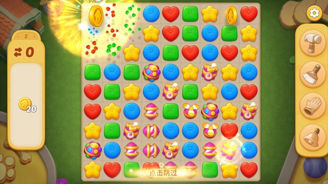 它包含轻松有趣的三消游戏玩法,还为初学者提供细致入微的指导。