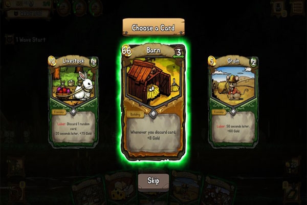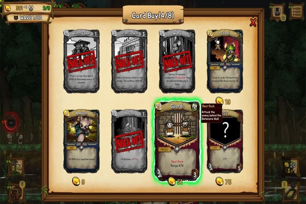 8、到了后期,商店里就别拿兵种了,选择拿技能牌。因为就算兵再多,实际战斗中也会显得不够用,只有放出技能削减怪物的血量,才是制胜的关键。