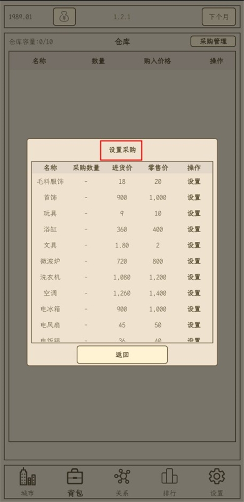 5. 于自身店铺内,玩家能够设定物品采购数量、进货价格、零售价格等相关信息。