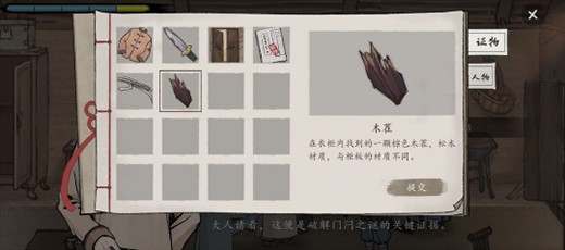 5、当点击布条后,上方堆积的衣物将会被移开,从而露出第三个证据:断掉的木茬。