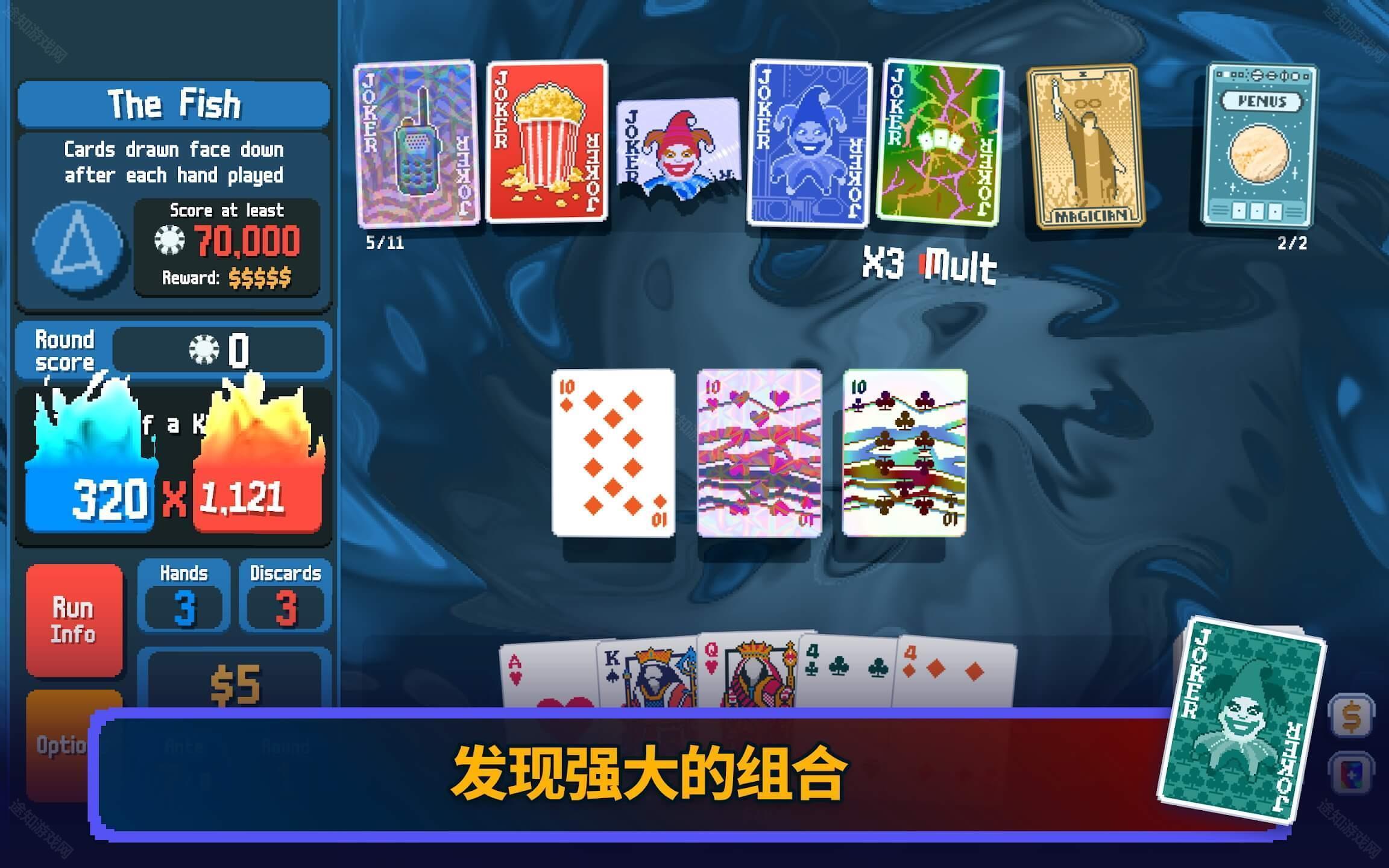 2、每一次取牌、弃牌以及每一张小丑牌,都可能对本回合的进程产生重大影响。