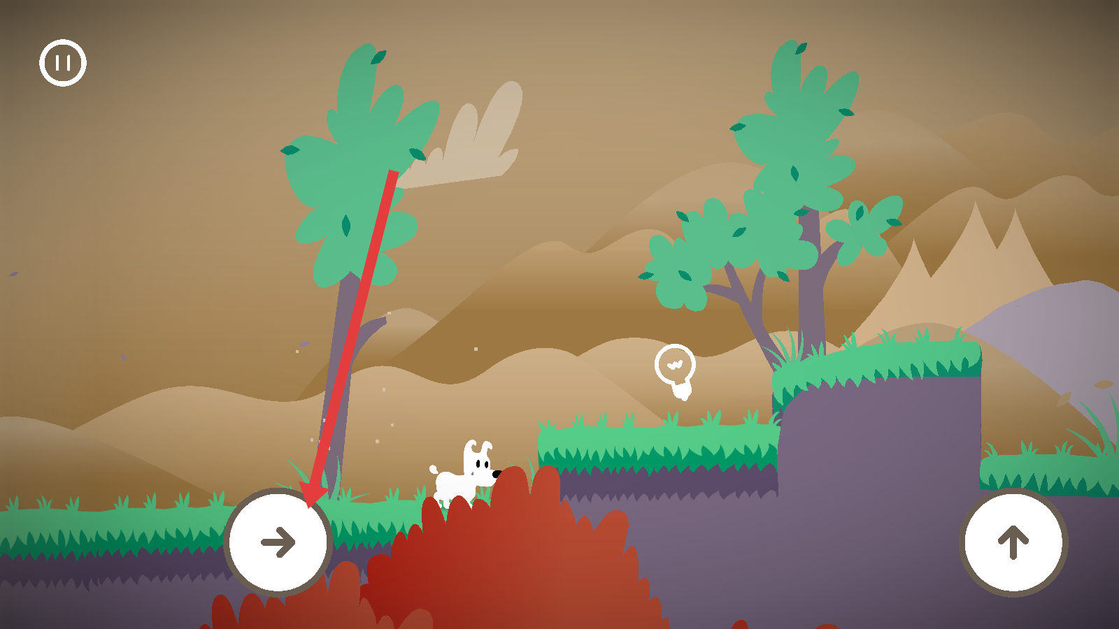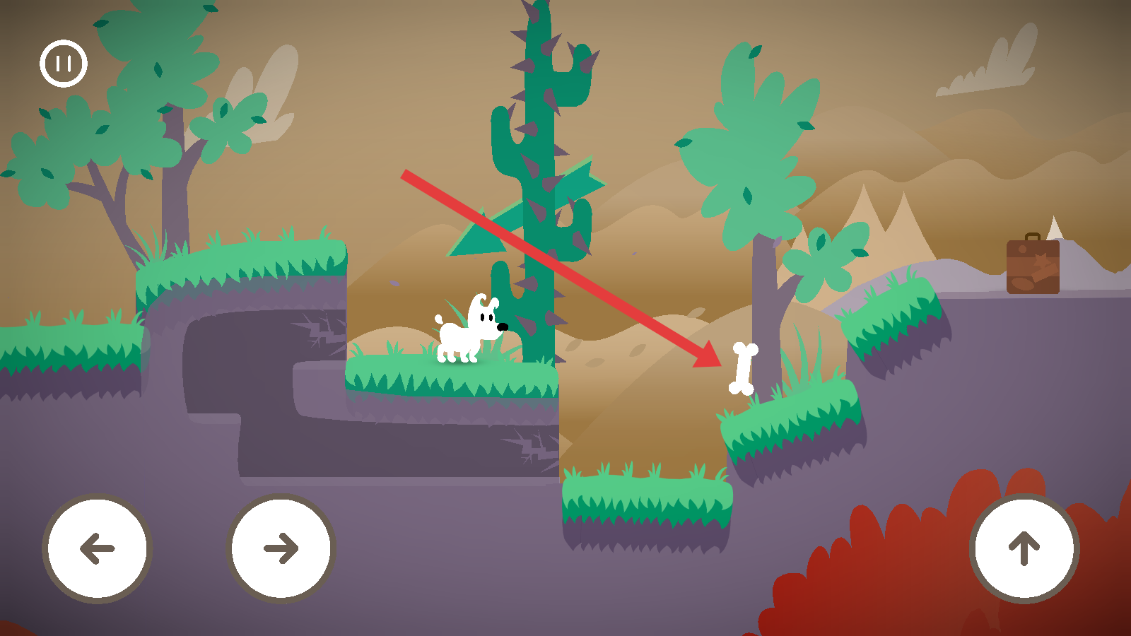 3、跳跃时,点击跳跃按钮,让小狗进行跳跃,可越过障碍物,到达更高的平台,以便继续探索或接近目标物品。
