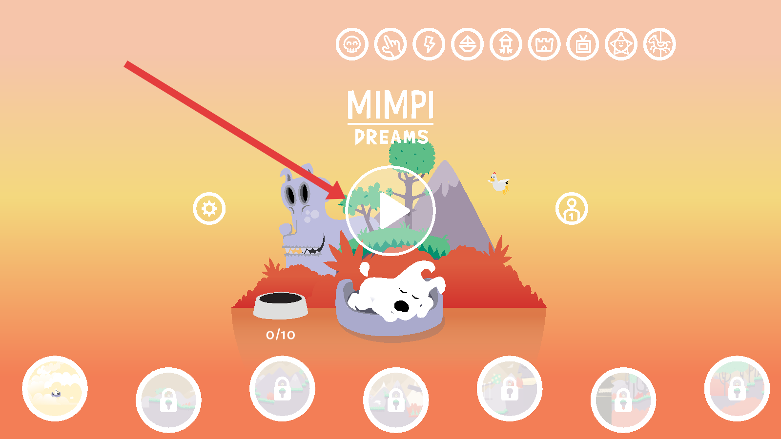 1、开始时,点击界面中的开始按钮,进入作品的冒险场景,开启小狗的冒险之旅,准备在场景中进行各种探索与操作。