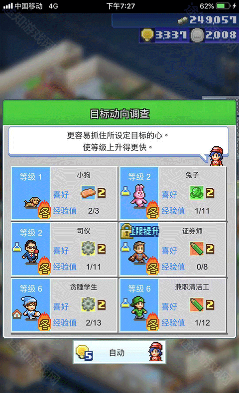 灯泡解锁等级上限:来到菜单查看信息界面,选择顾客一览,在界面的下方有一个上限提升的图标,点击这个图标就可以给所有的被锁住的顾客升级了,每一种顾客都需要25个灯泡。在目标调查客户这里也可以给顾客进行等级上限的解锁,不过这里只能给顾客一个一个的解锁。