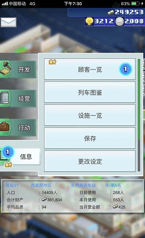 初始楼层:这一层全部用来做月台,也就是让列车运行的楼层,列车在游戏中仅仅是作为运输的工具,如果是使用列车作为主要收入的话就可以赶紧删游戏了,因为不管怎么玩年收入都不会升高太多。