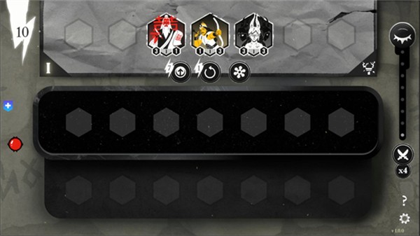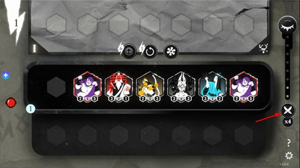 4. 神祗招募:战斗开始后,界面顶部显示可招募的神祗,角色下方灰色数字代表等级,左侧显示费用,右侧为攻击力。