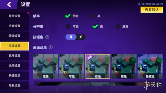 2、在游戏正式开始前,点击右上角的设置按钮,可以调整游戏画质、音效以及操纵方式等设置。